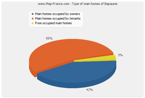 - Number of main homes of Bapaume occupied by owners : 617 - Number of main homes of Bapaume occupied by tenants : 806 - Number of main homes of Bapaume occupied free of charge : 46 |