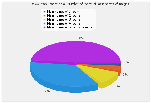 In 2007, 27 main homes of Barges were occupied by owners. Meanwhile, 30 households lived in the town of Barges. The following graphs present the statistics of these households of Barges.
