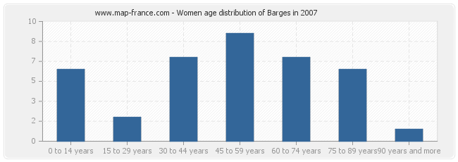 - Men inhabitants Barges in 2007 were 29 - Women inhabitants in 2007 were 38