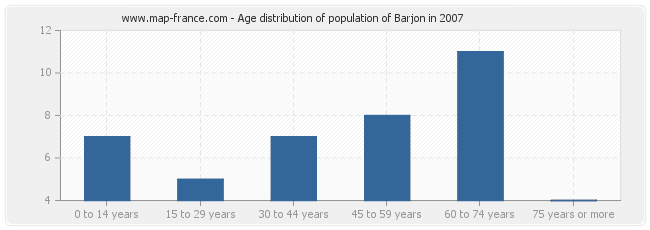- Population of Barjon from 60 to 74 years : 11 inhabitants