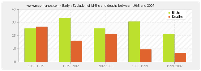 Barly : evolution of births and deaths from 1968 to 2007