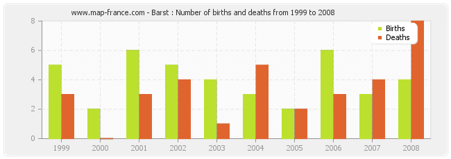 - Men inhabitants Barst in 2007 were 280 - Women inhabitants in 2007 were 266