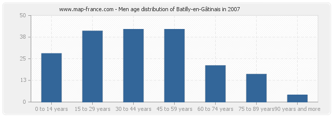 - Batilly-en-Gâtinais men inhabitants from 45 to 59 years : 42