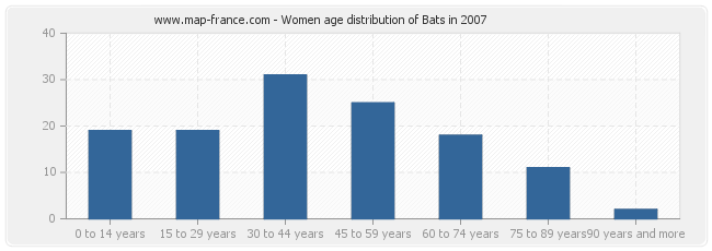 - Men inhabitants Bats in 2007 were 139 - Women inhabitants in 2007 were 126