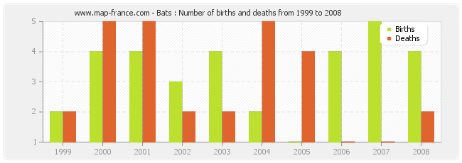 Population of Bats was 264 inhabitants in 2007, 230 inhabitants in 1999, 238 inhabitants in 1990, 232 inhabitants in 1982, 244 inhabitants in 1975 and 239 inhabitants in 1968.