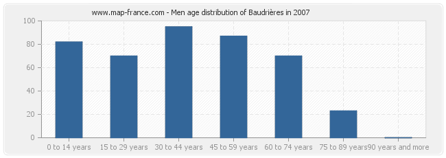 - Baudrières men inhabitants from 30 to 44 years : 95