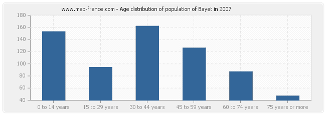 - Population of Bayet from 30 to 44 years : 154 inhabitants