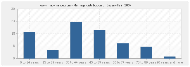 - Population of Bazenville from 30 to 44 years : 30 inhabitants