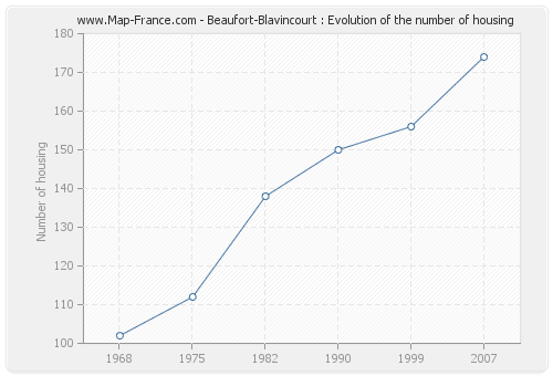 The number of housing of Beaufort-Blavincourt was 174 in 2007, 156 in 1999, 150 in 1990, 138 in 1982, 112 in 1975 and 102 in 1968.