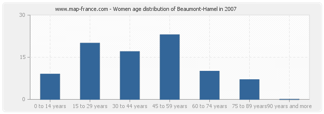 Women population distribution of Beaumont-Hamel by age in 2007 :