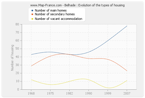 The number of housing of Belhade was 112 in 2007, 99 in 1999, 96 in 1990, 96 in 1982, 93 in 1975 and 84 in 1968.
