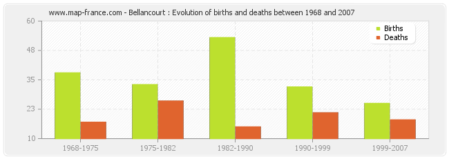Bellancourt : evolution of births and deaths from 1968 to 2007