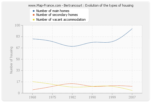 The number of housing of Bertrancourt was 109 in 2007, 97 in 1999, 95 in 1990, 92 in 1982, 99 in 1975 and 102 in 1968.