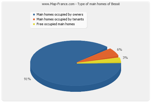 - Number of main homes of Bessé occupied by owners : 61 - Number of main homes of Bessé occupied by tenants : 4 - Number of main homes of Bessé occupied free of charge : 2 |