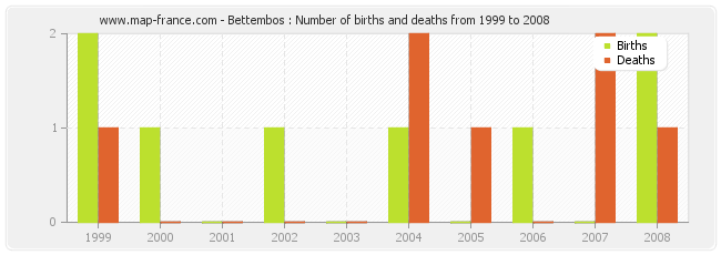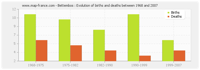 Population of Bettembos was 98 inhabitants in 2007, 97 inhabitants in 1999, 88 inhabitants in 1990, 89 inhabitants in 1982, 86 inhabitants in 1975 and 97 inhabitants in 1968.