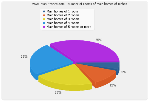 - Number of main homes of Biches of 1 room : 8 - Number of main homes of Biches of 2 rooms : 19 - Number of main homes of Biches of 3 rooms : 36 - Number of main homes of Biches of 4 rooms : 36 - Number of main homes of Biches of 5 rooms and more : 56 |