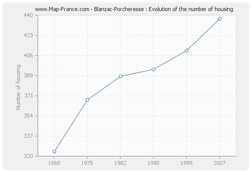 The number of housing of Blanzac-Porcheresse was 437 in 2007, 410 in 1999, 394 in 1990, 388 in 1982, 368 in 1975 and 324 in 1968.