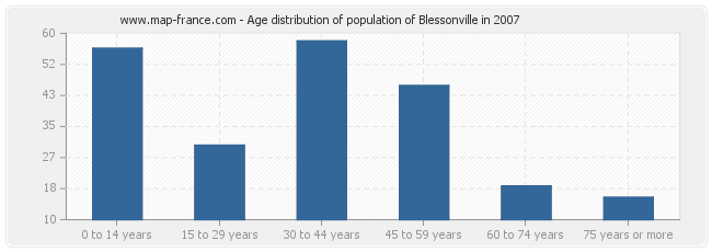 Distribution of the population of Blessonville by age in 2007 :
