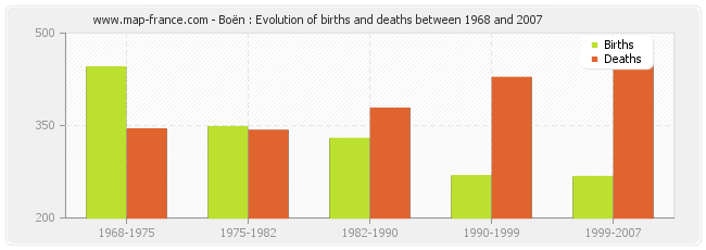 Population of Boën was 3 117 inhabitants in 2007, 3 118 inhabitants in 1999, 3 256 inhabitants in 1990, 3 603 inhabitants in 1982, 3 766 inhabitants in 1975 and 3 654 inhabitants in 1968.