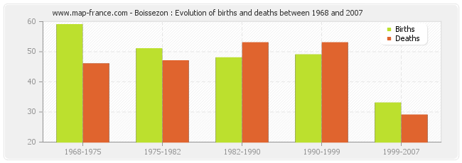Boissezon : evolution of births and deaths from 1968 to 2007