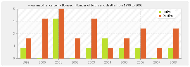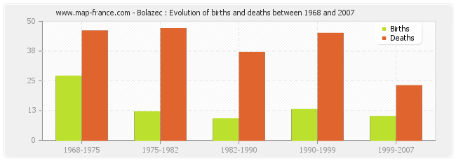 Bolazec : evolution of births and deaths from 1968 to 2007