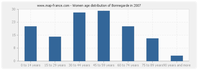 - Bonnegarde women inhabitants from 45 to 59 years : 29