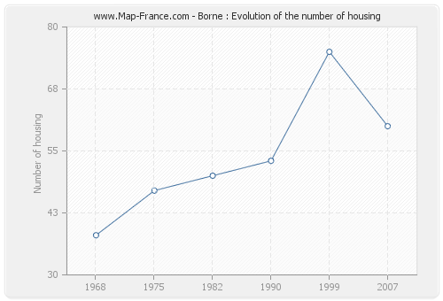 The number of housing of Borne was 60 in 2007, 75 in 1999, 53 in 1990, 50 in 1982, 47 in 1975 and 38 in 1968.