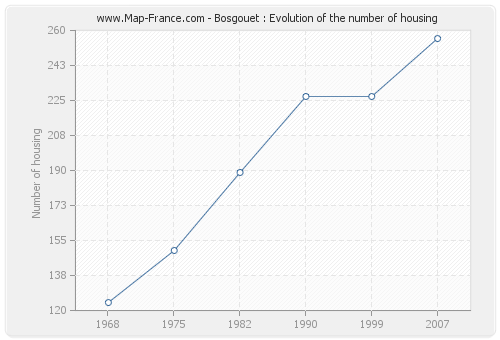 The number of housing of Bosgouet was 256 in 2007, 227 in 1999, 227 in 1990, 189 in 1982, 150 in 1975 and 124 in 1968.