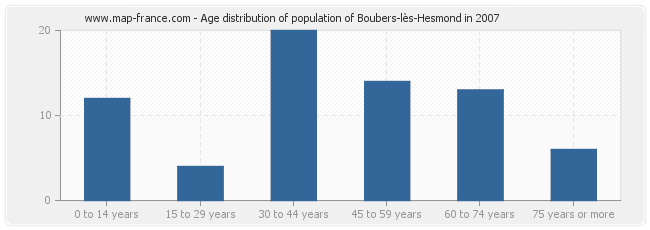 - Population of Boubers-lès-Hesmond from 30 to 44 years : 20 inhabitants