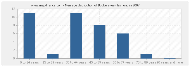 - Boubers-lès-Hesmond men inhabitants from 30 to 44 years : 11
