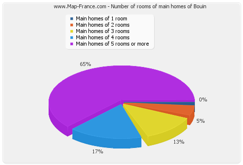 - Number of main homes of Bouin of 1 room : 0 - Number of main homes of Bouin of 2 rooms : 3 - Number of main homes of Bouin of 3 rooms : 8 - Number of main homes of Bouin of 4 rooms : 8 - Number of main homes of Bouin of 5 rooms and more : 41 |