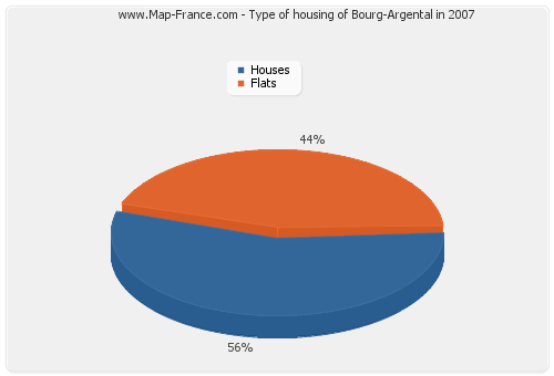 The accommodation of Bourg-Argental in 2007 consisted of 811 houses and 641 flats.