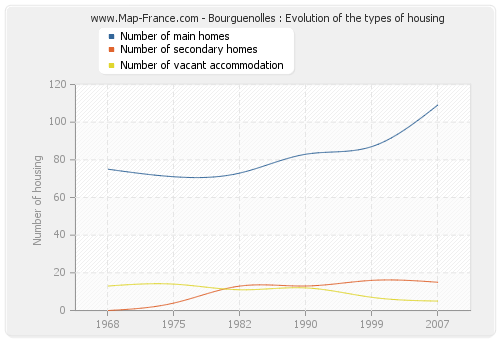 The number of housing of Bourguenolles was 129 in 2007, 110 in 1999, 108 in 1990, 97 in 1982, 89 in 1975 and 88 in 1968.