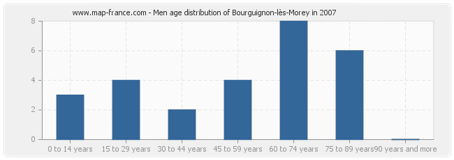 - Bourguignon-lès-Morey men inhabitants from 60 to 74 years : 8