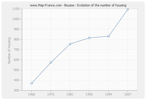 The number of housing of Bousse was 1 094 in 2007, 831 in 1999, 816 in 1990, 755 in 1982, 574 in 1975 and 370 in 1968.