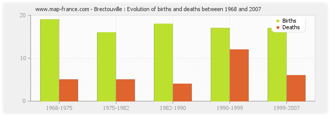 Brectouville : evolution of births and deaths from 1968 to 2007