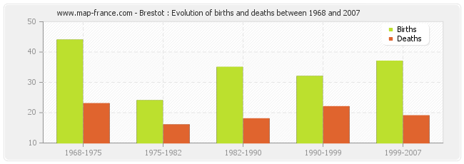 - Men inhabitants Brestot in 2007 were 234 - Women inhabitants in 2007 were 231