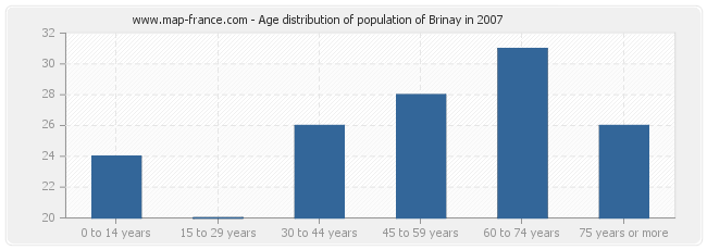 - Population of Brinay from 60 to 74 years : 32 inhabitants