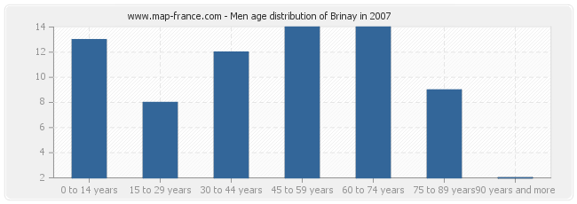 - Men inhabitants Brinay in 2007 were 74 - Women inhabitants in 2007 were 79