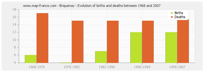 Briquenay : evolution of births and deaths from 1968 to 2007
