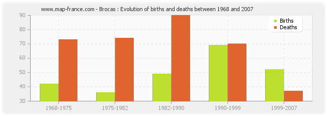 - Men inhabitants Brocas in 2007 were 383 - Women inhabitants in 2007 were 404