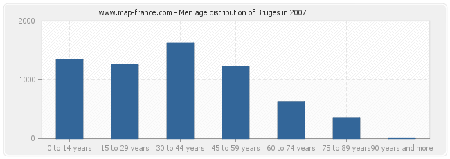 - Population of Bruges from 30 to 44 years : 2 566 inhabitants