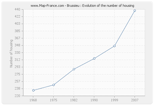 The number of housing of Brussieu was 437 in 2007, 347 in 1999, 315 in 1990, 288 in 1982, 248 in 1975 and 234 in 1968.