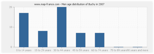 Men population distribution of Buchy by age in 2007 :
