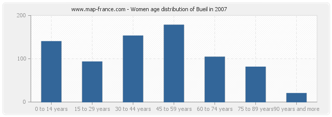 - Men inhabitants Bueil in 2007 were 732 - Women inhabitants in 2007 were 769