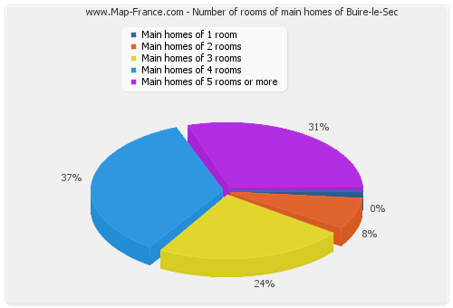 - Number of main homes of Buire-le-Sec of 1 room : 1 - Number of main homes of Buire-le-Sec of 2 rooms : 23 - Number of main homes of Buire-le-Sec of 3 rooms : 69 - Number of main homes of Buire-le-Sec of 4 rooms : 69 - Number of main homes of Buire-le-Sec of 5 rooms and more : 88 |