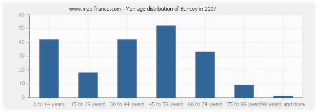 - Buncey men inhabitants from 45 to 59 years : 52