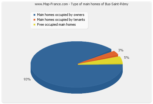 - Number of main homes of Bus-Saint-Rémy occupied by owners : 99 - Number of main homes of Bus-Saint-Rémy occupied by tenants : 3 - Number of main homes of Bus-Saint-Rémy occupied free of charge : 5 |