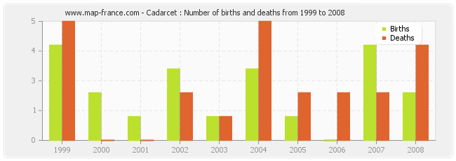 Cadarcet : births and deaths from 1999 to 2008
