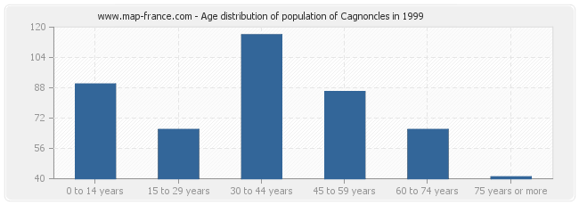 - Population of Cagnoncles from 30 to 44 years : 116 inhabitants